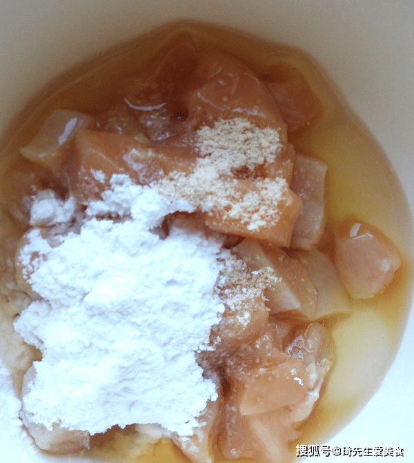 既然是家常做法,我们干脆“随大流”,用鸡胸肉烹饪。首先将鸡胸肉切成小块,然后加入蛋清、料酒、淀粉抓匀,在此过程中,可以酌情放一些鸡粉提鲜。将食材静置二十分钟,让鸡肉充分入味。