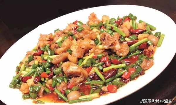 将油放入锅底,加热至50%热。加入干辣椒15克、姜蒜片10克、干花椒5克爆香。加入400克猪肉炒香。克(把油往前拉),青耳荆条段60克,红小米辣段25克,翻炒1分钟,佳美记鲜辣酱6克,盐4克,鸡粉3克,味精味精,拌匀后倒入藤椒5克油就出锅了。