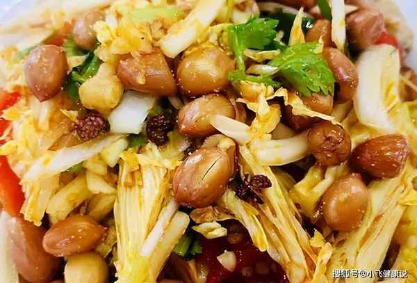 3.倒入香醋和香油,拌匀即可食用。花生不要去皮,因为皮有养血的作用
