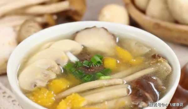 2.南瓜放入微波炉,大火加热6分钟至变软,烧热一锅油,加入混合好的香菇炒5分钟。3.倒入水,盖上锅盖烧开,加入南瓜泥,加入鸡粉和盐调味,撒上葱花装饰。