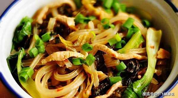 材料:粉丝1把;1-2泰勒的猪肉末;2个红葱头;2个小的绿色蔬菜;1片酸菜;泡姜蒜;