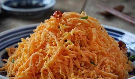 做法:1、胡萝卜用削皮器磨成细丝,用盐水泡10分钟左右(盐要多加,因为以后蒸的时候不用加盐)