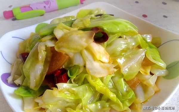 材料:卷心菜、五花肉、蒜头、干红辣椒、盐、油、酱油、新鲜香草。