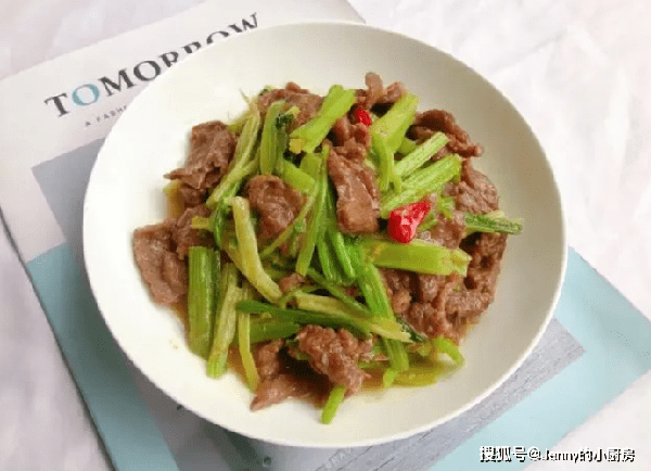 最后倒入牛肉翻炒均匀,再加入少许生抽、鸡精,快速翻炒均匀出锅。