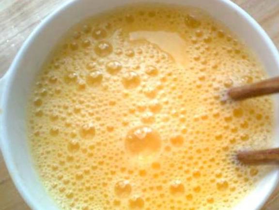 2.开始准备配料,蒜片少许,切点香菜末,碗中装两个鸡蛋,加点醋去腥味,然后打散就可以。