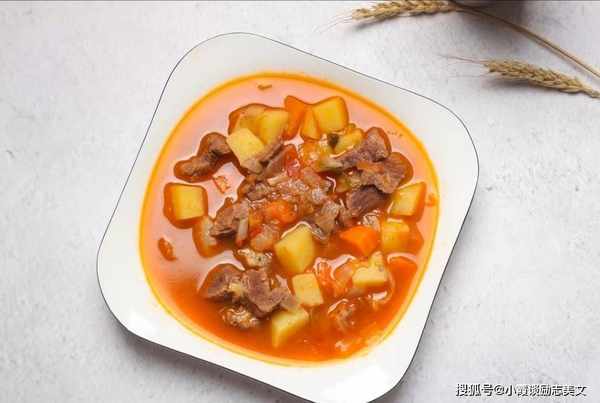 3.锅里倒入油,爆香洋葱,然后加入胡萝卜和土豆一起炒,沥干备用。4、锅内加少许油,倒入西红柿炒至烂,加少许水,加入番茄酱。