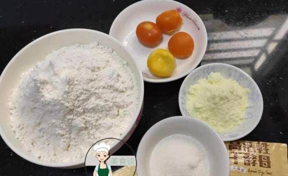 流沙馅:咸蛋黄3个、鸡蛋黄一个、奶粉25克细砂糖、40克黄油、35克。
