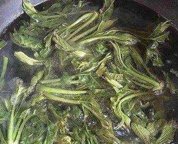 2、上下翻动几次,见香椿软化就捞出,再立即放在4℃的冷水中快速过一下,以保证香椿的色质。