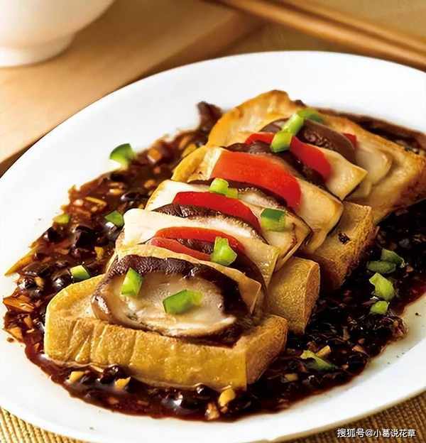2、陈皮、姜洗净切碎;把豆豉泡软,然后切碎备用。3.取出一个盘子,先放一块做法1的豆腐,然后放入红辣椒片和平菇片,重复此步骤,直到用完所有材料。