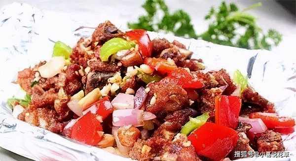做法:1、肉蟹宰杀洗净,切块撒上生粉,用40%的热油在锅中炸至表面呈金红色,捞出沥干油。
