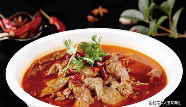 3.将豆瓣酱、刺灰、葱花、蒜片、姜片放入油锅中炒香,加入高汤、酱油、精盐、味精、糖、胡椒粉,烧开,先放牛肉再放蔬菜;