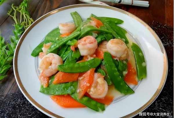 配料表:胡萝卜、虾仁、荷兰豆、葱花、蒜片、盐、糖、料酒、酱油、生粉