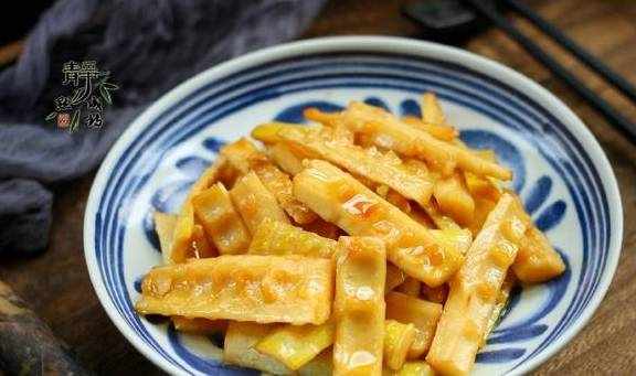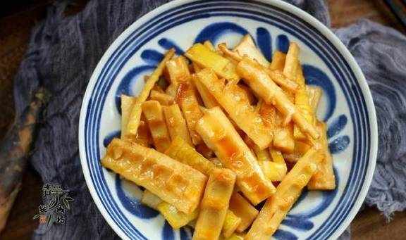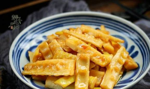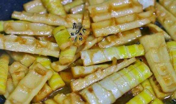 【材料】雷笋6根、酱油1汤匙、冰糖5克、香油少许、油适量。