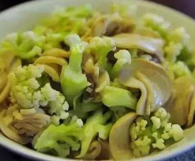 材料:鸡肉、菜花、葱花、姜末、甘草籽、食油、料酒、盐、鸡精、蚝油、生粉。
