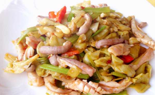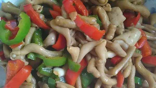 材料:鸭肠400克,尖椒2个,大蒜适量,姜末适量,生抽一勺,蚝油一勺,料酒少许