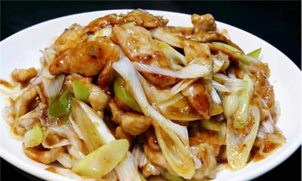 1.大块的里脊肉扔进水里,然后切成小块放入锅中,加入料酒、葱花、姜末和胡椒粉