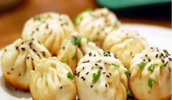 4.锅烧热注满油,将包子放入锅中加热至中温,煎1-2分钟,底部开始结皮,然后加水至水位1/3包子,用大火煮熟身体,盖上锅盖晾干。