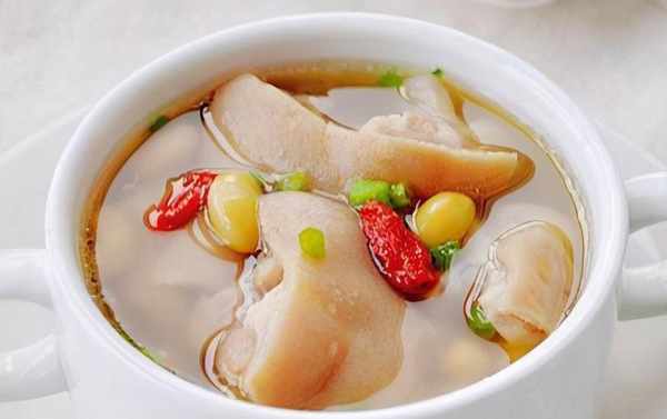 材料:猪脚、花生、木瓜、矿泉水、盐、姜、葱