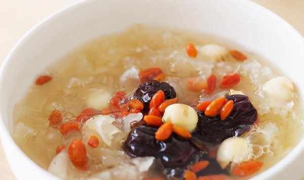 1.准备好材料,白蘑菇和莲子泡软,沥干水,红枣和罂粟洗净。