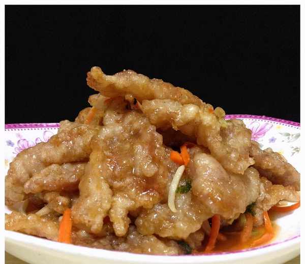 原料:牛腰肉200g;马铃薯淀粉100克;糖50克;米醋50毫升;植物油600毫升(用的不多);料酒5毫升;盐1g+1g;葱、姜、蒜各5克;