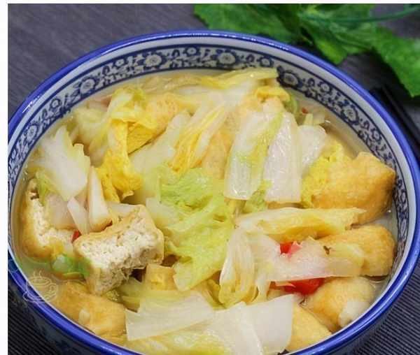 制作过程:第一步,将白菜叶洗净,用手撕开,先洗净一块老豆腐,过水,切成均匀的厚片,打一个鸡蛋,倒入豆腐块中;
