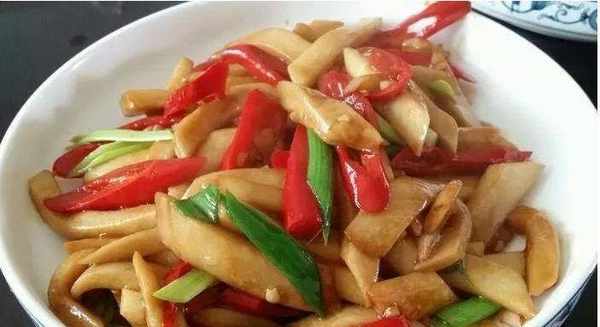配料表:杏鲍菇、姜丝、葱末、小米椒、酱油、蚝油、食用油