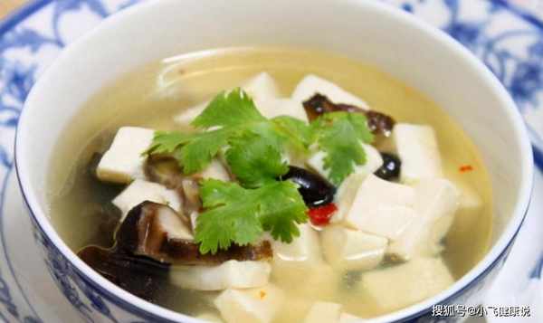 5.煮3分钟后,加入豆腐、香料、适量的盐,用水淀粉勾芡;