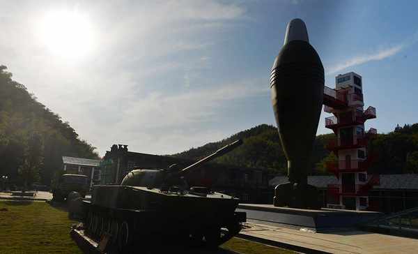 这是画家村新设立的三线军工博物馆陈列的坦克和炮弹雕塑,威武霸气。