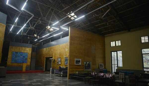 图为2023年3月5日,霍山县诸佛庵镇仙人冲“画家村”利用三线军工厂老房改造的油画展厅。