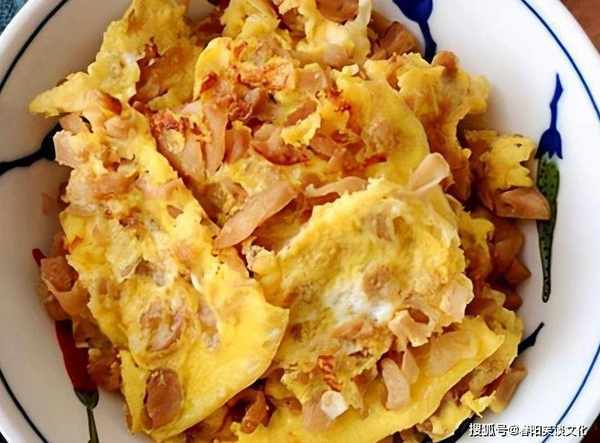 5、将萝卜干炒干,加入鸡蛋混合液。