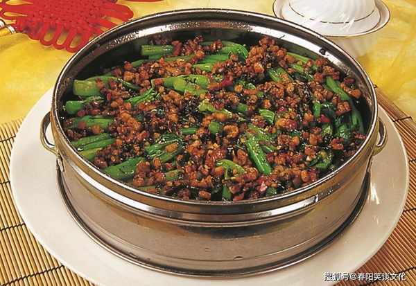 材料:菜心、猪肉馅、酱油、葱、姜、蒜、料酒、香油、黑豆、白胡椒