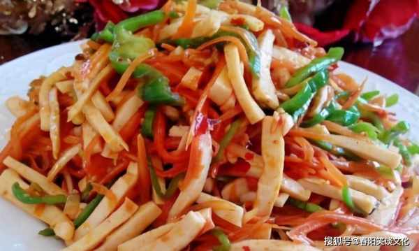材料:千叶豆腐150克,香菇50克,花椒30克,胡萝卜50克,大蒜适量,红辣椒适量,白糖1茶匙,白醋半茶匙,老醋1茶匙,盐2克、胡椒粉少许、水淀粉少许、生抽1茶匙、干淀粉1茶匙