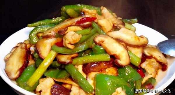 原料新鲜香菇一盒(300克)猪肉约150克、蒜苔、灯笼椒50克、干辣椒8个、姜葱少许、酱油5毫升、鸡肉3-4克香精、水2克、淀粉少许