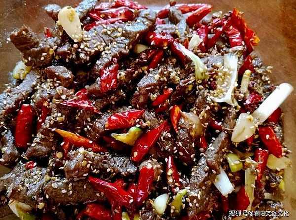 大火收汁,翻炒,待汤汁收干时加入适量鸡汤、少许孜然粉、胡椒粉,加入葱花,不断搅拌,至满意为止。