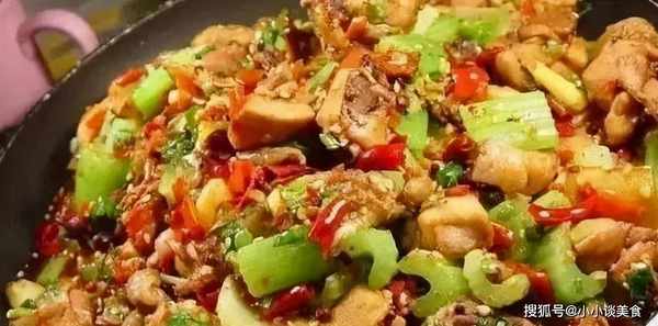 1芹菜切段。在锅中加热油,加入芹菜并炒熟。芹菜煮熟后,取出备用。