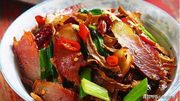 6.将洗净的腊肉晾干,切成薄片