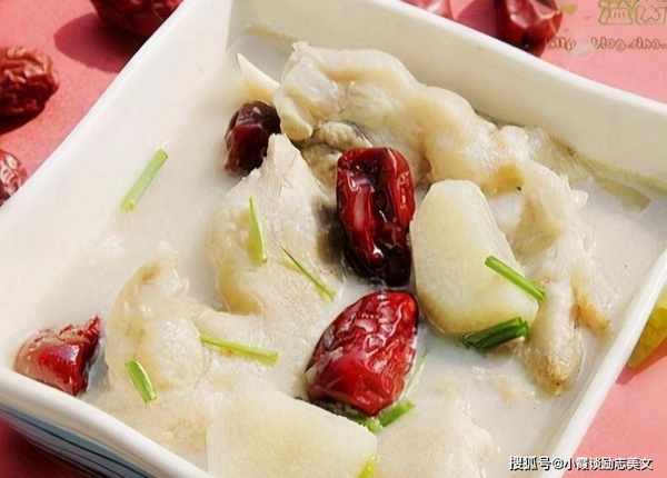4.脆皮猪手汤味淡,山药粘枣味甘,滋补润肤