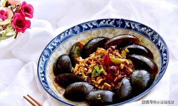 3、将葱花、开阳糊和郫县坚果混合,放入热油锅中炸香。4、然后倒入蒸好的茄子块拌匀,最后倒入鸡汤拌匀。