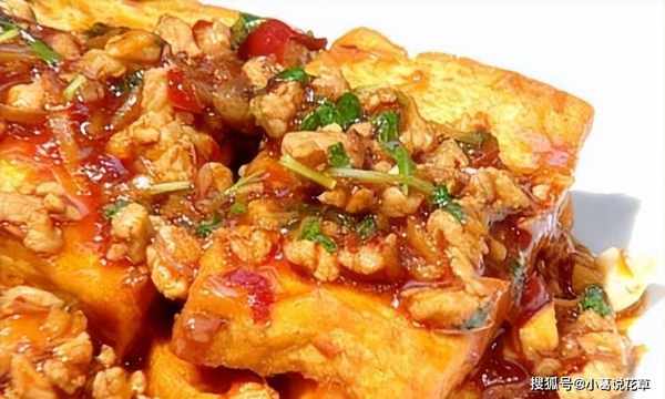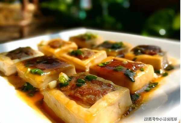 做法1、豆腐切成大方块,用勺子挖小洞。