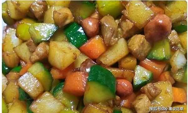 做法:1、土豆去皮切成小块后,用清水冲洗两遍,这样去淀粉炒的时候才不会粘锅。将黄瓜和胡萝卜切成大小相等的块备用。
