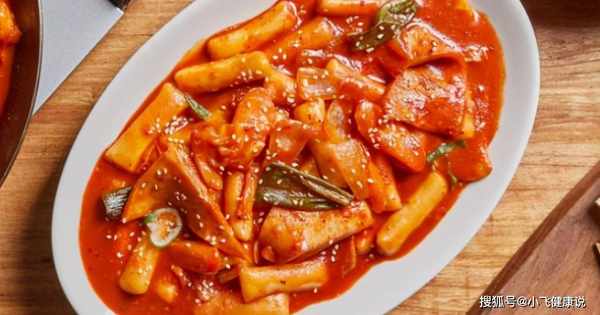 材料:年糕条、卷心菜、胡萝卜、洋葱、韩式辣椒酱、韩式酱油、糖、韩式泡菜、少许芝麻