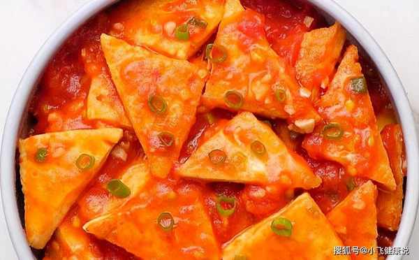 【所需材料】北豆腐1盒,西红柿300克,油10克(炸豆腐用),油10克(炸用),大蒜2瓣,葱末适量,15毫升生抽、盐适量、白糖2克。