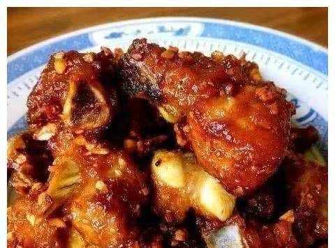 3、油锅烧热,油温上升后,将底排骨煎熟;开中火(一定要调好火候,中火!!!油温太高容易烧焦!),整形后的排骨翻动一下;放油;4、开大火,待油温上升后,转中火再炸。(此时要快速翻动,不然蒜头容易糊);四十或五十秒后将其取出。盘子。