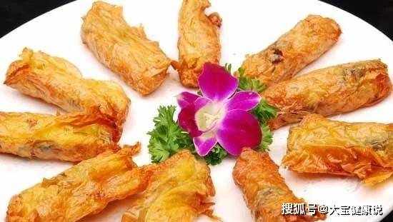 3.油烧至50%热,下豆腐卷炸至表面金黄,捞出,油温升高,豆腐卷回锅沥油,沥干备用吸油纸用来吸油,沾汁的步骤就可以了。