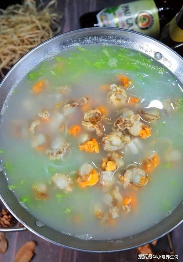 原料:无沙花甲200克,豆腐1片,生姜1/2片,香葱,盐、胡椒粉适量。
