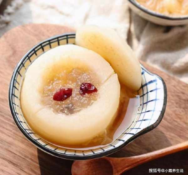 4、将梨杯放入碗中,文火煮30分钟,5分钟后加入冰糖和枸杞即可。