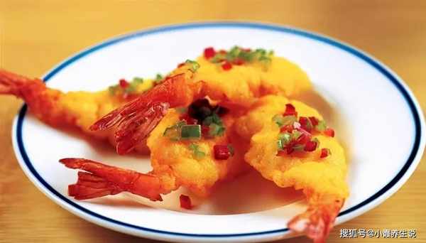 3、虾仁沾干面粉,沾上蛋液,入油炸至两面金黄,起锅装盘,撒上盐和胡椒粉即可食用。