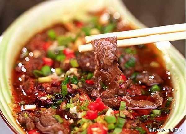 4、加入剁碎的豆瓣酱,炒红油,加入高汤,烧开汤,加入牛肉碎,煮至变色;5、牛肉捞出放在生菜上面,淋上汤汁,撒上蒜末、姜末、花椒粒、蒜末、花椒粒、辣椒酱,最后倒入热油提香。
