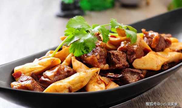 原料:大蒜150克,牛肉500克,料酒3克,盐3克,味精3克,酱油5克,姜3克。