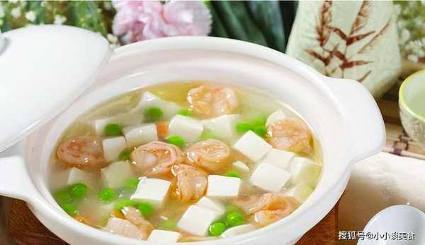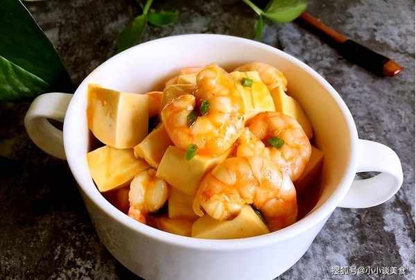 原料:豆腐1盒,虾仁300克,葱花1个;酒1汤匙,油1汤匙,白胡椒粉1茶匙,盐2茶匙,酒1汤匙(水煮虾),半开水1汤匙。